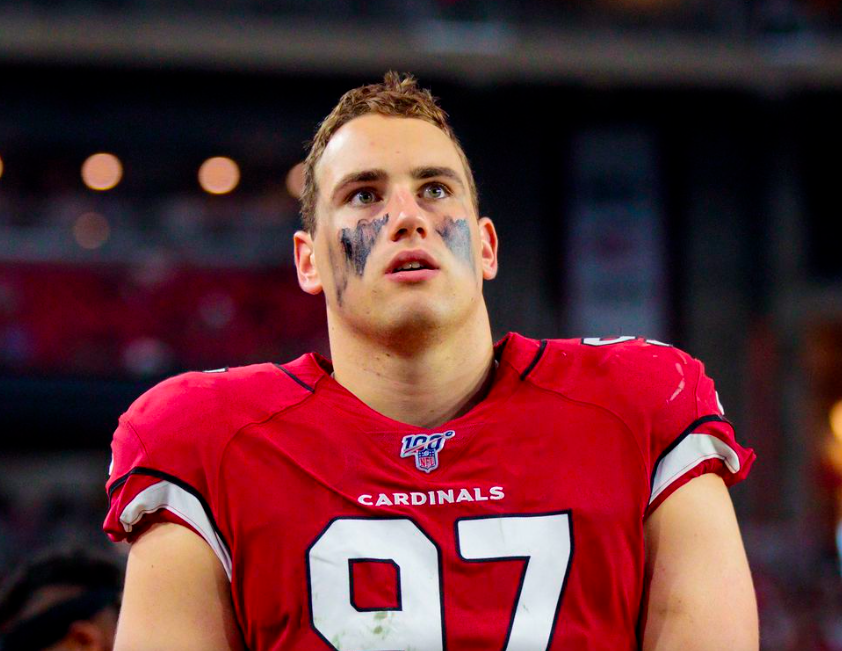 Zach Allen was picked by the Arizona Cardinals in the third round (65th overall) of the 2019 NFL Draft. He started his rookie season as a defensive end, but after four games suffering a neck injury, he missed six weeks and was placed on injured reserve. In 2020, he earned his first NFL sack and ended the season with 2 sacks, 35 tackles, and 3 passes defended, though he missed time due to another injury.